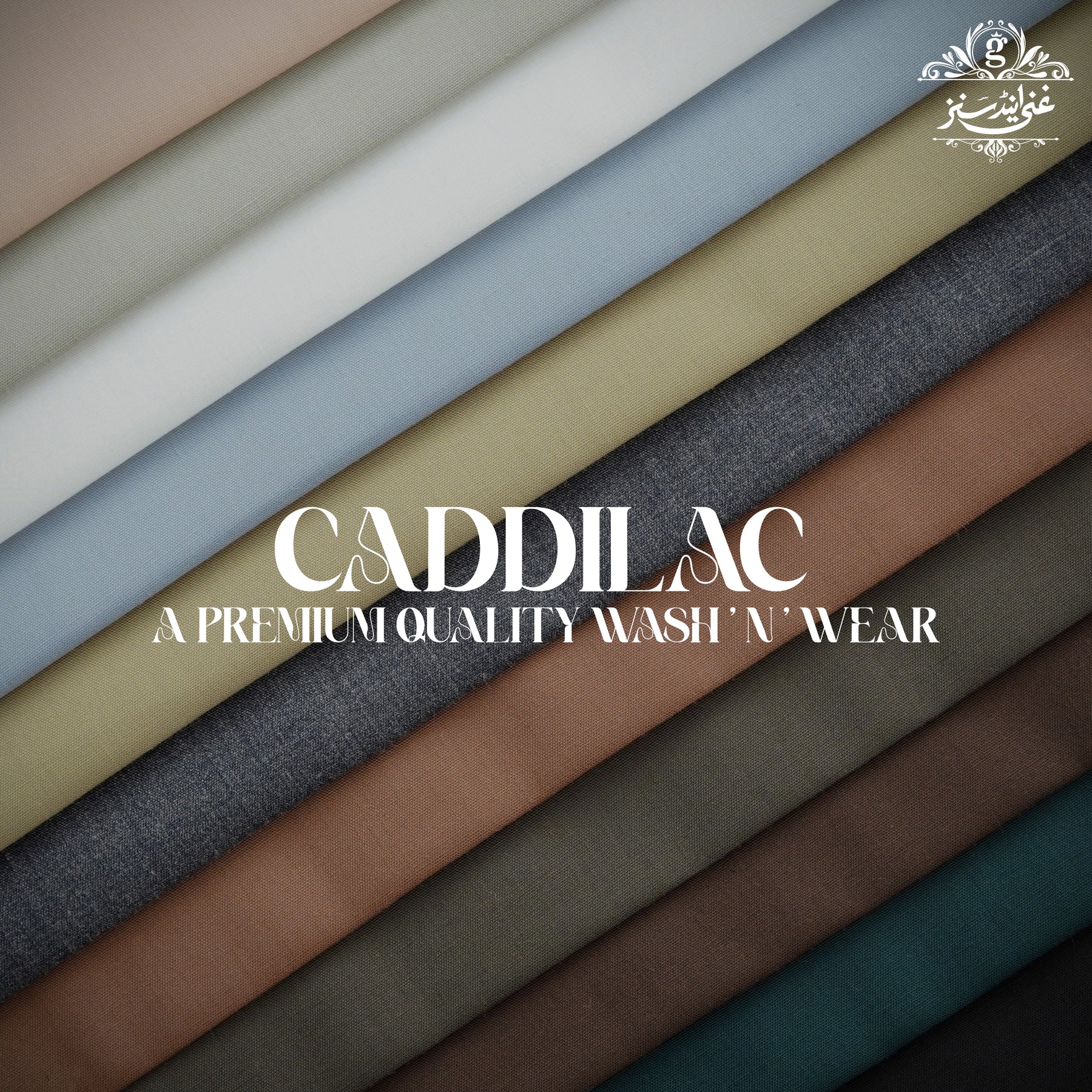 Based on the available information, there is no official, publicly advertised brand name "Cadillac" for a premium wash & wear fabric from Ghani & Sons. It's possible that "Cadillac" is an informal or local name used to refer to a specific product line, but it is not a registered trademark or a name used on their official website or social media.